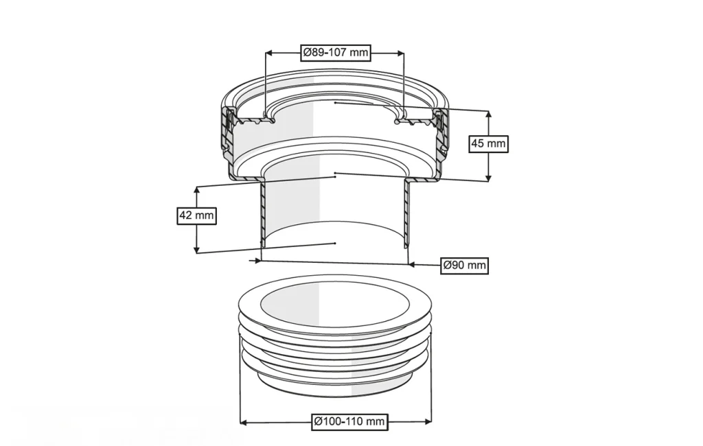 Ensures a perfect fit between the toilet and the waste pipe. Provides the simplest and most practical solution where no offset is required.